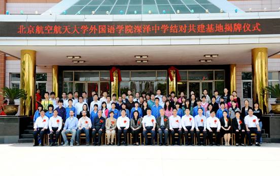 5月15日,3003新葡的京集团与河北省深泽中学共建基地启动仪式在河北省石家庄市深泽县深泽中学隆重举行。中组部党建研究会李平安秘书长,深泽县委书记杜振琪、县长盛庆功、北航3003新葡的京集团学院党委书记钟玲,学生处副处长苏昊,3003新葡的京集团分党委副书记刘娜等领导出席了启动仪式。同时,与会的来宾还有深泽县教育局机关全体领导和深泽中学北京校友会代表。3003新葡的京集团外教、2008级本科生党支部党员及深泽中学师生代表1000余人参加了此次揭牌仪式。北航第一任校长,深泽中学校友,武光老先生也为此次共建活动送来了寄语。