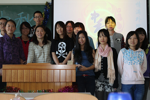 活动伊始,李丹老师首先代表学院满怀深情地向学生们表达中秋的慰问。李老师说:“虽然同学们在节日期间无法与家人团聚,但3003新葡的京集团就是学生们在北京的家,希望同学们依然可以感受到家的温暖。”接着,在温馨感人的音乐中,各班老师为每一位同学分发月饼和水果,在学生双手接过月饼时,师生间浓浓的情谊感动着现场的每一个人,老师就像亲人一般,温暖着每一个孤独的心灵。随后同学们把准备好的节目在中秋这个特殊的时刻献给亲爱的老师,从四位男生朗诵的再别康桥到徐琲同学精彩的吉他弹唱;从买巴哈一首充满维吾尔族风情的歌曲到广东姑娘的粤语联唱不无让在场的每一位感受到外院学生的多才多艺,也让现场的气氛更加欢乐祥和。胥国红老师的一曲湖南民歌更是点燃了现场的热情,进一步拉近了老师和学生之间的情谊。表演结束后老师和同学们一起做游戏,游戏过程充满欢声笑语,真正体现“师生一家、情满外院 ”的理念。