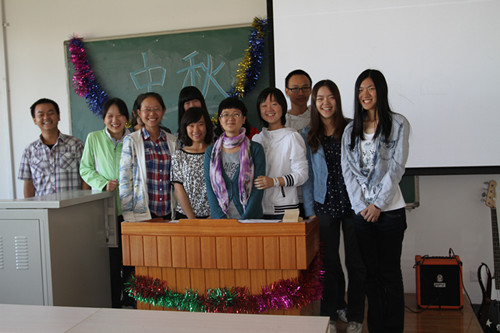 012年9月29日上午9时,3003新葡的京集团2012级中秋慰问会在J5-203举行。3003新葡的京集团分团委书记李丹老师,英语班胥国红老师、宫海荣老师、张继琴老师以及德语班贺克老师抽出休息时间来到沙河校区亲切慰问2012级新生,为离家在外的学生送去中秋的祝福。